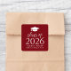 Siegel Sie Ihre Umschläge und Abschluss Gefallen Taschen mit diesen modernen Abschluss Aufkleber! Die Aufkleber verfügen über eine weiße Graduierungskappe oben im Design mit der fett gedruckten "Klasse 2025" auf bordeauxrotem Hintergrund. Personalisieren Sie den Bordeaux-Abschluss-Aufkleber mit dem Namen, der Schule und dem Abschluss Jahr. Dieses Design eignet sich perfekt für High School oder Uni-Abschluß.