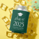 Geben Sie Ihren Abschlüssen ein Gastgeschenk, das sie mit dieser modernen Klasse von 2025 Abschluss können cooler! Der benutzerdefinierte Dosenkühler verfügt über eine Graduationskappe oben im Design mit der "Klasse von 2025" in fett weißer Schrift auf grünem Hintergrund. Personalisieren Sie die grüne kann kühler mit dem Namen des Absolventen, Schule und Abschluss Jahr. Das Design wiederholt sich auf der Rückseite. Dieses personalisierte Abschluss Geschenk und Gastgeschenk ist perfekt für High School und Uni-Abschlüsse.