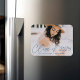 Feiern Sie den Abschluss mit unserem stilvollen Foto Abschluss Magneten. Der Magnet des Abschlusses zeigt das Foto des Absolventen mit "Class of 2025" in einem blau-modernen Kalligrafieschrift-Overlay mit optionalem weißen Farbverlauf. Personalisieren Sie den modernen Magneten des Abschlusses, indem Sie den Namen und den Namen des Absolventen hinzufügen. Das Design eignet sich sowohl für Absolventen der Highschool als auch für Absolventen der Uni.