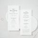 Diese Karte für die Hochzeitszeremonie enthält Abschnitte für alle Informationen zu Ihrer Hochzeitszeremonie, einschließlich Ihrer Dienstordnung und Einzelheiten zu Ihrer Hochzeitsfeier. Die minimalistische, moderne Einrichtung verleiht dem Hotel ein raffiniertes Aussehen, das sich perfekt für einen eleganten und eleganten Hochzeitstag eignet.
