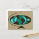 Reisen Sie mit dieser Postkarte der Modernen Globe Kunst aus dem Mittelalter um die Welt. Das Design zeichnet sich durch einen abstrakt ovalen Globus mit Holzkornkontinenten aus. Die Ozeane sind in aquamarinen und türkisfarbenen Tönen gehalten. Der Globus befindet sich auf einem dreieckigen Holzständer und die ganze Welt ist auf einem weizenfarbenen Hintergrund.