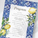Besteht aus Serifen und kursiver Schriftzeichen-Typografie. Alle vor einem Aquarellbild mit blauen und weißen mediterranen Fliesen mit grünen Blätter, Zitronen und wilden Blume botanicals. Dieses wurde von White Paper Birch Co. entworfen, exklusiv für Zazzle. Abrufbar unter: http://www.zazzle.com/store/whitepaperbirch
