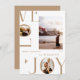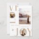 Célébrez la chaleur et la magie de la saison avec cette carte de Noël photo moderne et magnifique « Amour & Joie ». Avec une mise en page épurée et élégante, une typographie audacieuse et un espace pour trois photos de famille chéries, cette carte de vacances capture des souvenirs sincères dans un design contemporain et minimal. Les tons neutres doux et l'utilisation artistique de l'espace négatif apportent une touche raffinée et stylée à vos vœux de vacances. Personnalisez-la avec le nom de votre famille et l'année pour la rendre vraiment unique. Idéale pour les familles qui souhaitent envoyer un message joyeux cette saison de Noël.