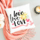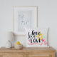 Dieses Ferien-Design zeigt den Text "Liebe Liebe Liebe" in der modernen Typografie mit einem rosa Band und Herz. #Liebe #romance #romantic #typography #modern #chic #stylish #girly #feminine #giftsforher #bedroom #bedroomdecor #holidays #holidays #saisonale #pillow #cuslow #cushions #homedecor #decor #Zuhause #valentine #valentinmittwoch