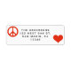 Dieses moderne Retourenadressen-Label besticht durch einen klassischen weißen Hintergrund mit modernem Friedenszeichen und einem roten Herz. **ALLE Farben inklusive Symbole, Hintergrund und Text sind mit dem Designwerkzeug anpassbar.