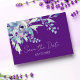 Diese elegante und kühne moderne Lila Floral Boho Wedding Save The Date Postcard ist der perfekte Weg, um Ihren großen Tag zu verkünden! Mit atemberaubender botanischer Aquarell-Blume und Kalligraphie-Schrift-Typografie ist diese elegante Save the Date-Karte der ideale Set für Ihre Hochzeit. Das prächtige Blumenmuster vor einem lebendigen lila Hintergrund verleiht dem Design eine elegante Touch, während die böhmischen Details ein entspanntes, entspanntes Ambiente schaffen, das sich perfekt für einen Sommer oder eine Hochzeit im Herbst eignet.