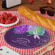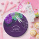 Elegante Teller in Pflaume lila zu violetten Tönen und Touch von Aqua mit Libellen Akzent. Modernes, romantisches Blumenthema. Passen Sie Text mit Ihren Hochzeitsinformationen an.
