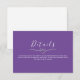 Mit dieser modernen, lila Hochzeitskarte mit violettem Hintergrund, elegantem Silberseil und schicken Kalligrafien können Sie wichtige Informationen mit Ihren Gästen teilen. Ideal, um Empfang, Unterkunft, Anfahrtsbeschreibung und andere wichtige Informationen zu berücksichtigen und gleichzeitig Ihre minimalistische Hochzeitsbriefmarkensuite zu ergänzen.