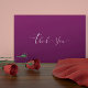 Die wunderschöne, romantische Dankeskarte an Ihren Gast für die Teilnahme an Ihrem ganz besonderen Tag: die präsente, weiße Typografie, die auf lila Pflaumenhintergrund geschrieben wird, und die Rückenmassage an Ihre Familie und Freunde.