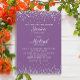 Moderne und elegante Hochzeitseinladung lila mit silberem Glitzer und einem kursiven Script-Schriftart.