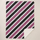 Die moderne Sherpa-Decke für Mädchenschlafzimmer weist diagonale Streifen in lila, schwarz und weiß auf.