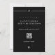 Diese fett gedruckte und Save the Date Anweisungskarte weist einen dunkelschwarzen Hintergrund mit klassischem weißem Text auf. Moderne Linien bilden eine Grenze auf der oberen und unteren Ebene, die Ihre Initialen abbildet. Es gibt auch einen Ort für einen QR-Code, den Ihre Gäste nach weiteren Einzelheiten der Hochzeit suchen können, und Ihr Foto geht auf die Rückseite.