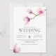 Eine atemberaubende Hochzeitseinladung für Paare, die ein sauberes, modernes Ambiente suchen. Die zauberhafte, cremefarbene Magnolia mit rosa und cremefarbenen Wasserfarben verfärbt sich auf einem knalligen, weißen Hintergrund und einem dunkelgrauen, modernen Schriftart. Die Rückseite ist in Vollgrau gehalten, kann aber entfernt werden.