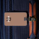 Moderne männliche Gepäckmarke mit schwarzer Monogramm und weißem Namen auf braunem Hintergrund. Personalisieren Sie Namen, Initial und Adresse auf der Rückseite.