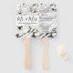 Moderne, schwarz-weiße Marmorsteine und Imitate bedruckten geometrische Dreiecksmuster der Kontur aus Gold, Hochzeitsfans. Dieses klassische und raffinierte Design ist perfekt für das trendige und stilvolle Ehepaar. Personalisieren Sie Ihre eigene Nachricht auf der Vorderseite sowie ein individuelles Monogramm auf der Rückseite. Das gesamte Foto-Druckdesign.