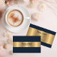 Moderne Navy und Brushed Gold Business Card. Dieser Name und die personalisierte Visitenkarte mit marineblau Hintergrund und gebürstetem Goldstreifen eignen sich für den Einsatz in jeder Art von Unternehmen, die ihre eigenen Produkte und/oder Dienstleistungen erfolgreich vermarkten möchten. Namen, Titel und Auswahl der Schriftart können mit dem Design-Tool von Zazzle leicht eingefügt werden.