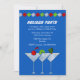 Invitation cocktail de vacances faite dans un bleu vif, avec des graphiques de trois verres stylisés de martini, sur le fond et une bordure en diamant coloré, sur le dessus. Personnalisez le texte personnalisé en fonction de vos besoins.