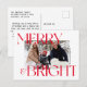 Merry & Bright rahmen Ihr Foto auf der Vorderseite. Eine Textzeile auf der rechten Seite des Fotos erlaubt es Ihnen, Ihren Namen oder Ihre Lieblingsnachricht anzupassen. Auf der Rückseite befindet sich eine vorgedruckte Rücksendeadresse und eine Nachricht. Teil der Kollektion Moderne Merry & Bright Typografie.