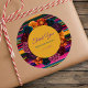 Mit dieser modernen mexikanischen Blume, die einen gelben Round Sticker hochzacken kann, fügen Sie Ihrem Hochzeitsgeschenk eine lebendige Touch hinzu. Mit einem kühnen Blumenrahmen in lebhaften Rot-, Rosa-, Gelb- und Grüntönen strahlt das Design mit fröhlicher Energie aus, die von der traditionellen mexikanischen Kunst inspiriert wird. Ein farbenfroher gestreifter Hintergrund, der an mexikanische Textilien erinnert, fügt einen spielerischen und dennoch modernen Kontrast hinzu. Dieser Rundaufkleber ist perfekt zum Abdichten von Umschlägen, zum Verpacken von Vorzügen oder zum Hinzufügen personalisierter Details in Ihr Dekor geeignet und vereint festlichen Flair mit zeitgenössischer Eleganz, die sich ideal für ein farbenfrohes, kulturelles und Liebe-Fest eignet.