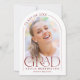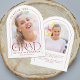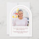 Diese schlichte, minimalistische Bogenankündigung mit einem zarten Bogenrahmen, 2 Bildvorlagen und eleganter moderner Typografie zeichnet sich durch einen puristischen, roten und weißen Abschluss aus.