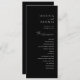 Moderne minimal élégant Script Chic Wedding Programme Élevez votre cérémonie de mariage avec ce magnifique programme de mariage de script de calligraphie moderne, minimaliste et élégant. Rédigé en noir et blanc classique, ce programme est le moyen idéal pour guider vos invités dans votre journée spéciale. L'élégant script met en évidence vos noms, la date du mariage, l'emplacement et l'ordre des cérémonies, assurant ainsi une expérience inoubliable et transparente. Au verso du programme, vous pouvez inclure des détails sur votre fête de mariage, tels que les noms de vos demoiselles d'honneur, groomsmen, fille de fleurs, porteur de bague, et officiant. Cette touche personnalisée ajoute un élément spécial à votre programme et permet à vos invités d'en apprendre davantage sur les personnes qui sont importantes pour vous.