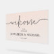 Ein ACRYLIC Begrüßungszeichen zeichnet sich durch einen transparenten staubigen rosa Farbverlauf und Ihre Hochzeitsdetails in schicker Schrift aus. Wechseln Sie in eine beliebige Größe.