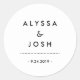 Dieser stilvolle, minimalistische Hochzeitsaufkleber hat modernen schwarzen Text mit Ihren Namen und Hochzeitsdatum.