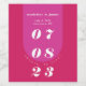Unser minimalistisches Retroweinlabel ist perfekt für das trendige Ehepaar, das von Lieben stehend und kühn ausgesprochen wird. Unser Design verfügt über eine kühn leuchtende Farbkombination zwischen rosa und magenta. Eine abstrakte Bogenform schafft einen kühnen Look, wobei das Hochzeitstermin in weißem, großen Schriftart kühn angezeigt wird. Von Moodthology Papery entworfen