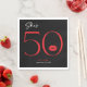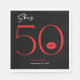 Moderne und schicke, dieses Geburtstagsessen Serviette Design erklärt, "sie ist 50" und verbindet klassisches Schwarz und Weiß mit Akzenten von leuchtendem Rot, mit einem spielerischen Paar Lippen. Es ist minimales Design ist ein einfaches und lustiges Design, um den Meilenstein Geburtstag zu feiern. Erstellt von der einfachen Farmhouse Press.