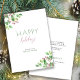 Moderne trendige minimalistische nophoto rot grüne Winterferien Familie benutzerdefinierte Text Grußkarte Vorlage mit Happy Holidays Typografie Schrift und botanischen Grün mit saisonalen roten Beeren. ++++++++++++ Persönliche Gestaltung mit Text und Unterschrift auf beiden Seiten, um Ihre Grüße an Ihre Familie und Freunde zu senden!