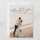 Eine elegante, moderne und minimalistische Hochzeit danke Ihnen Karte, wo Ihr Foto ist der Höhepunkt des Designs. Ein eleganter, handgeschriebener Schriftart mit den Worten "Danke", verbunden durch ein Herz, fügt eine Touch von trendiger Eleganz hinzu. Die Elemente können neu positioniert, neu formatiert und neu verfärbt werden, um sie an Ihr Foto anzupassen. Personalisieren Sie die Vorlage mit Ihrem Familiennamen und senkrechten Foto auf der Vorderseite. Auf der Rückseite, ein Landschaftsbild-Foto sowie Ihre benutzerdefinierte Nachricht und Signatur-Zeile. © Kimbellished, LLC