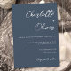 Eine raffinierte Hochzeit mit eleganten Kalligraphiebriefen auf marineblau-blauem Hintergrund. Dies ist Teil der passenden Hochzeitssuite, die Sie vollständig personalisieren können.