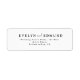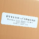 Dieses moderne minimalistische Rücksendelabel besticht durch elegantes schwarzes Skript auf einem sauberen, weißen Hintergrund. Es wurde für eine Hochzeit konzipiert und fügt eine raffinierte Touch zu Ihren Hochzeitseinladungen oder Dankeschön-Karten hinzu. Matching-Elemente verfügbar.