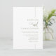 Eine elegante und moderne Weiß-Weiß-Brauteinladung mit minimalistischem Text, handgeschriebenem Schriftzeichen und trendiger vertikaler Linie. Personalisieren Sie die Vorlage mit Ihren Daten. Auf der Rückseite fügen Sie Ihren QR-Code, um Gäste zu Ihrer Hochzeitswebsite zu führen. © Kimbellished, LLC