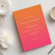 Minimalistische moderne Hochzeitseinladung mit orangefarbenem Gefälle und Text in schlichtem Stil.