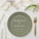 Moderne Hochzeitspapiere Teller für Ihre Hochzeitsfeier, Probe Dinner und Brautparty im minimalistisch grünen Thema der Grenze.