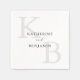 Monogram Hochzeitsnapkins mit modernem minimalistischem Typografie-Namen und Initialen in Schwarz-Weiß-Farbdesign.