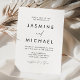 Einfache, elegante Einladungen mit einem schwarzen, handgeschriebenen Skript, kombiniert mit modernen Schriften mit weißem Hintergrund. Personalisieren Sie die minimalistische Hochzeitseinladung mit Ihrem Namen und Ihre Hochzeitsdetails. Die schicken Schwarz-Weiß-Einladungen sind die perfekte Wahl für moderne Hochzeiten.