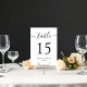 Diese Tischnummer ist mit einem schwarzen Drehbuch auf einem knalligen, weißen Hintergrund ausgestattet und bietet ein modernes minimalistisches Design. Diese Karte ist ideal, um Ihrem Hochzeitsempfang eine Touch Eleganz hinzuzufügen. Matching-Elemente verfügbar.