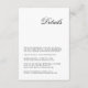 Eine Einführung in unsere moderne Minimalistische Script Wedding Detail Card, eine wesentliche Ergänzung zu Ihrer Hochzeitsbriefingsuite. Mit seinen klaren Linien und dem minimalistischen Skriptdesign strahlt diese Karte zeitgenössische Eleganz und Eleganz aus. Unsere mit Liebe zum Detail gestaltete Hochzeitsdetails-Karte bietet Ihnen wichtige Informationen für Ihre Gäste, wie z.B. Veranstaltungsdetails, Unterkunftsmöglichkeiten und weitere wichtige Details zu Ihrem besonderen Tag. Die minimalistische Schrifttyp fügt eine Touch der Verfeinerung hinzu, die ideal für Paare ist, die eine elegante und stilvolle Ästhetik für ihre Hochzeitsarbeit suchen. Auf hochwertigen Cardstock gedruckt, bieten unsere Kundenkarten ein luxuriöses Aussehen, das Ihre Gäste beeindrucken wird. Egal ob Sie eine intime Ansammlung planen oder eine große Feier feiern, diese Karte ist sicher, einen bleibenden Eindruck zu hinterlassen und sicherzustellen, dass Ihre Gäste alle Informationen haben, die sie brauchen, um Ihren Hochzeitstag so richtig genießen zu können. Machen Sie eine Aussage mit Ihrem Hochzeitsgeschirr und verbessern Sie mit unserer modernen Minimalistischen Script Wedding Detail Card die Komplexität Ihrer Hochzeitsdetails. Es ist die perfekte Wahl für Paare, die gepflegtes, modernes Design schätzen und ihre Schreibwaren so gewollt haben, dass sie ihren Geschmack widerspiegeln