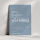 Modernes minimales Design mit trendiger Typografie auf staubblauem Hintergrund. Der Text kann leicht für ein einzigartiges Design für Ihren besonderen Tag personalisiert werden.