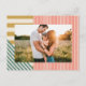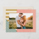 Dieses festliche und dennoch moderne Foto der Postkarte bietet eine Mischung aus dicken und dünnen Streifen in warmen Rot, Ockergelb und Dunkelgrün mit einem horizontalen Foto vorne. Auf der Rückseite ist viel Platz für Ihren eigenen, anpassbaren Text.