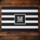 Moderne Mit Monogramm Erstklassigkeit klassisch schwarz und weiß gestreifte Außentür. Klicken Sie auf diese Vorlage personalisieren, um sie mit Ihrem eigenen Monogramm zu erstellen, das Sie schnell und einfach erstellen können. Weltweit schnell verschickt. Moderne Mit Monogramm Initial Elegant Schwarz-weiß Doormat. Erstellt von RjFxx © *Alle Rechte vorbehalten. #monogramOutdoorDoormat #BlackAndWhiteOutdoorDoormats #ZazzleMade