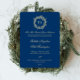 Moderne Monogram Gold Blue Wedding Folieneinladung