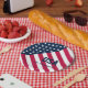 Moderne Nachname U.S.A.-Flagge Pappteller
