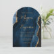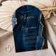 Moderne Navy Blue Agate Script Arch Hochzeit Einladung