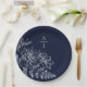 Moderne Navy Blue Monogram Floral Paper Plate Pappteller