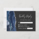 Moderne Navy Blue Silver Agate Wedding RSVP Card Karte