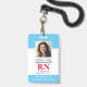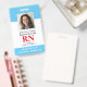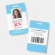Modernes Foto ID RN Registered Nurse Abzeichen. Design mit medizinisch blauem und weißem Hintergrund, Single Foto, Krankenhausname, Beruf und Name. Personalisieren Sie Ihren Bar Code und Ihre Kontaktdaten. Moderne ID-Abzeichen machen es Kunden und Kunden einfach, Mitarbeiter zu identifizieren. Um diese Vorlage zu bearbeiten, klicken Sie auf Weitere Einstellungen.