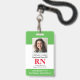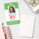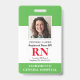 Modernes Foto ID RN Registered Nurse Abzeichen. Design mit medizinisch grünem und weißem Hintergrund, Single Foto, Krankenhausname, Beruf und Name. Personalisieren Sie Ihren Bar Code und Ihre Kontaktdaten. Moderne ID-Abzeichen machen es Kunden und Kunden einfach, Mitarbeiter zu identifizieren. Um diese Vorlage zu bearbeiten, klicken Sie auf Weitere Einstellungen.